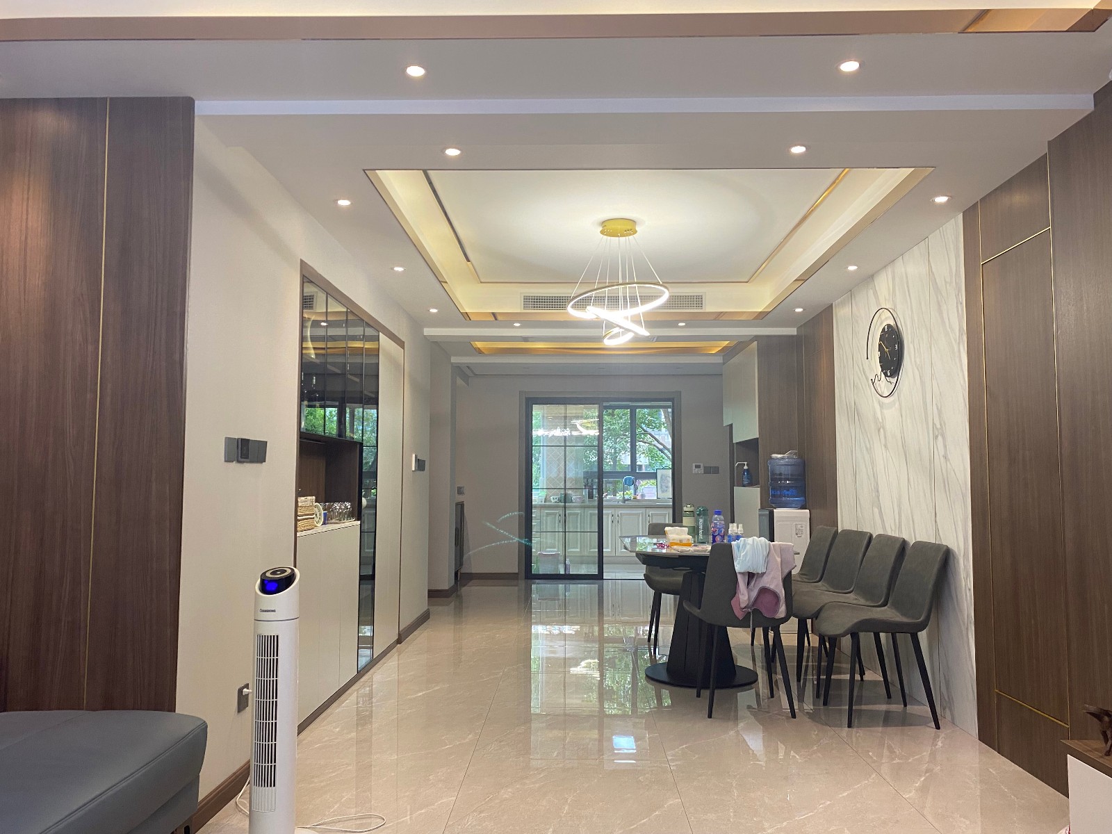 收纳柜面与餐桌均采用岩板定制,美观与实用并存,无处不彰显着主人的精致品位。