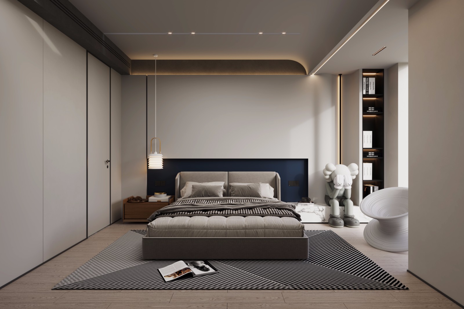 不需要过多繁琐的设计,所有的细节设计,都必须要考虑到孩子的需求。就比如,在现代简约儿童房中,大家可能看不到特别多的花样,却可以看到一个大大的游戏区。设计现代简约儿童房,会选择比较浅调颜色,就比如浅紫色等等,这样就可以营造出一种浪漫温馨的感觉。不会选择特别深的颜色,以免给儿童带来压迫感。